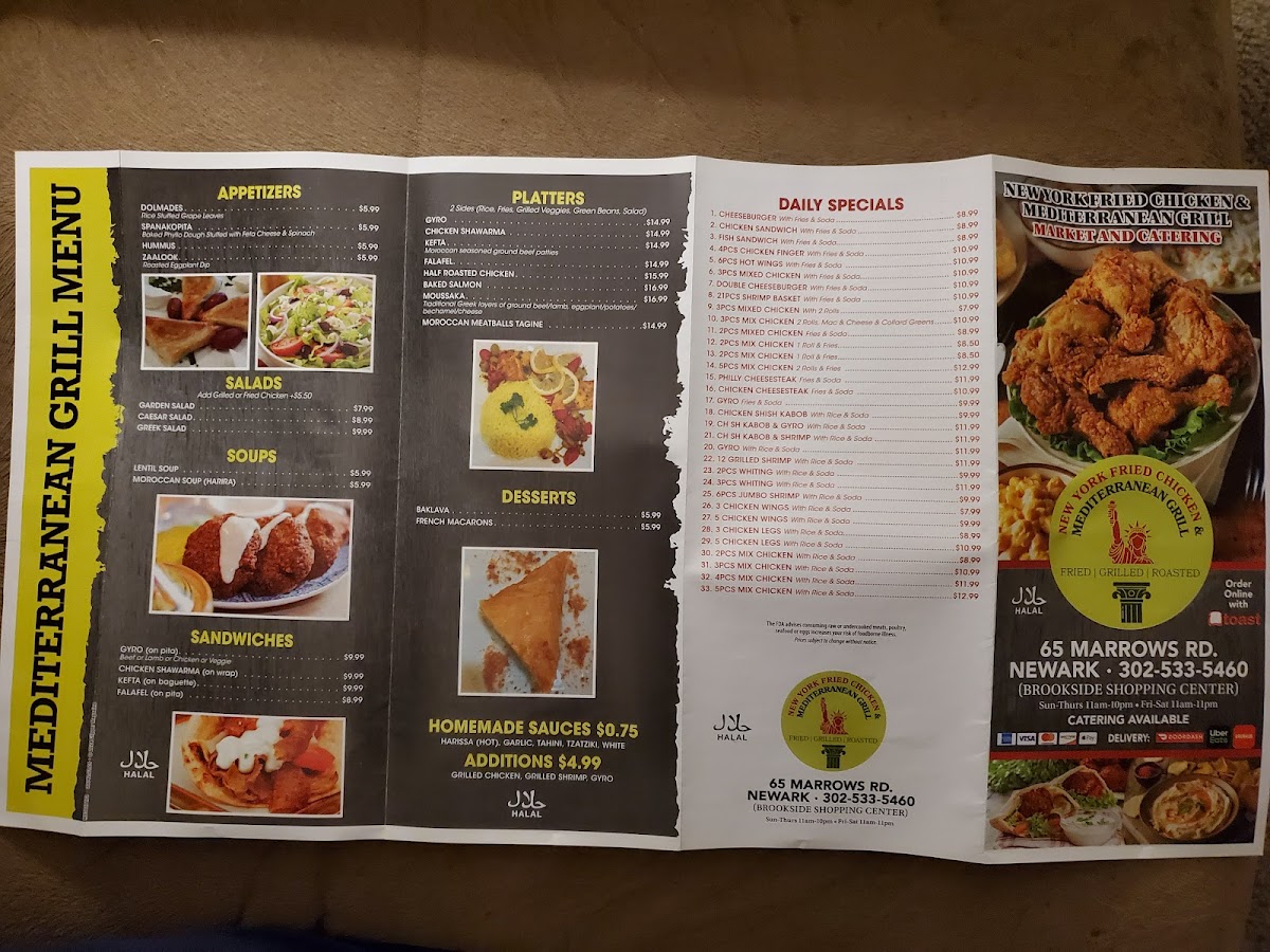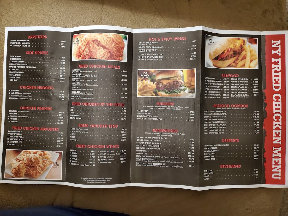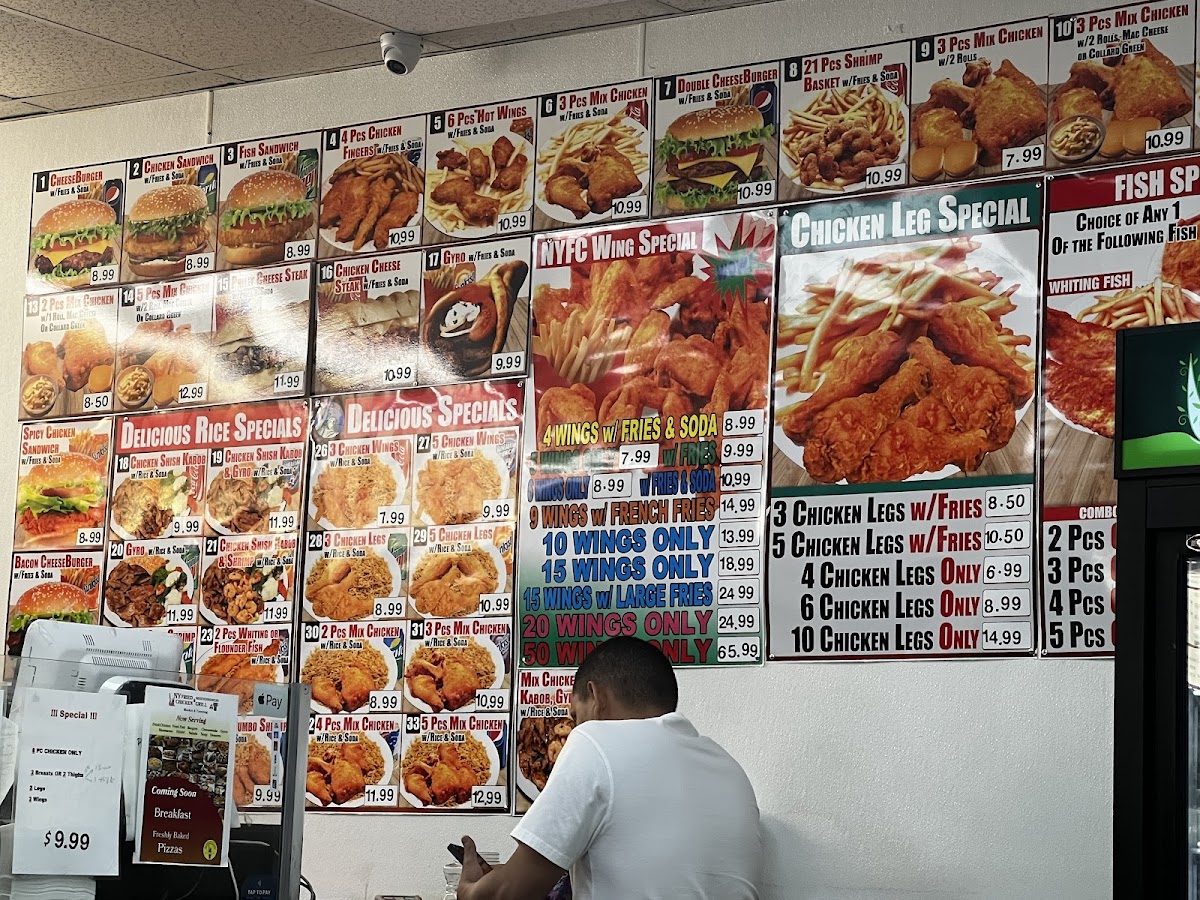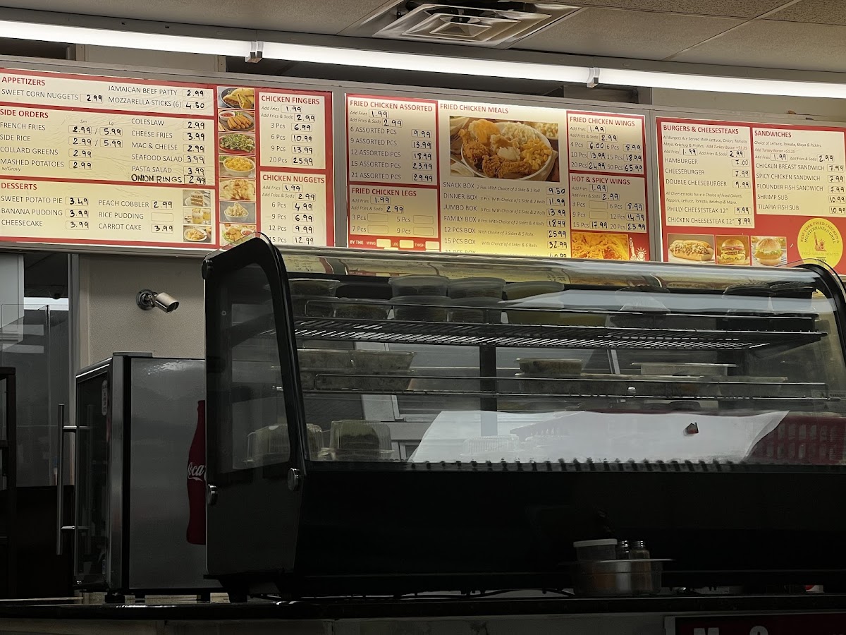 Overall, the menu at New York Fried Chicken & Mediterranean Grill offers a wide-ranging, comfort-focused selection that leans heavily into fried favorites and hearty combos, even though specific prices aren’t listed. Starters like Jamaican Beef Patty and Mozzarella Sticks (6) set a satisfying tone, while sides such as French Fries and Seafood Salad complement the generous portions. The chicken section is especially extensive, featuring options like 6 Nuggets, 3 Fingers, and larger family-style picks such as 12 Pcs Box or 21 Assorted Pcs, alongside classics like Wing, Leg, and Center Breast by the piece. Wing lovers can choose from 10 Wings Only or spice things up with 12 Hot & Spicy Wings. Beyond chicken, the menu expands into casual staples like Cheeseburger, Bacon Cheeseburger, and sandwiches including the Chicken Cheesesteak 12" and Flounder Fish Sandwich. Seafood options such as 21 Pcs Shrimp Basket Only or 3 Pcs Choice Of Fish & Fries add variety, while indulgent treats like Peach Cobbler and Cheesecake round things out. With extras like Loaded Chicken Fries and combo meals such as the Chicken Sandwich Combo, the menu feels designed for both quick bites and filling meals, making it a solid choice for anyone craving classic American fast-food flavors with a slightly broader twist.